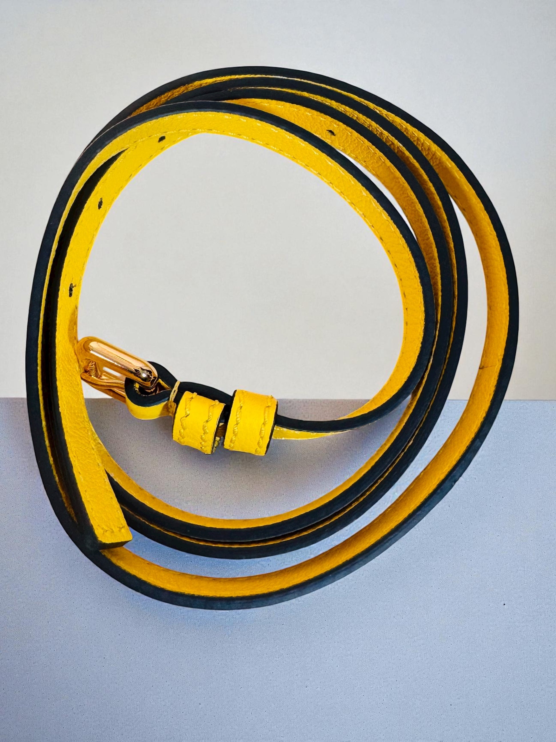 Iconica borsa Versace La Medusa Mini Bag, realizzata in pelle martellata gialla con interno in pelle color lilla pastello. Il manico superiore in catena effetto resina tono su tono e la chiusura magnetica con testa di Medusa in rilievo rendono il modello immediatamente riconoscibile. Include tracolla regolabile e removibile in pelle. Interno con scomparto singolo e slot portacarte.
