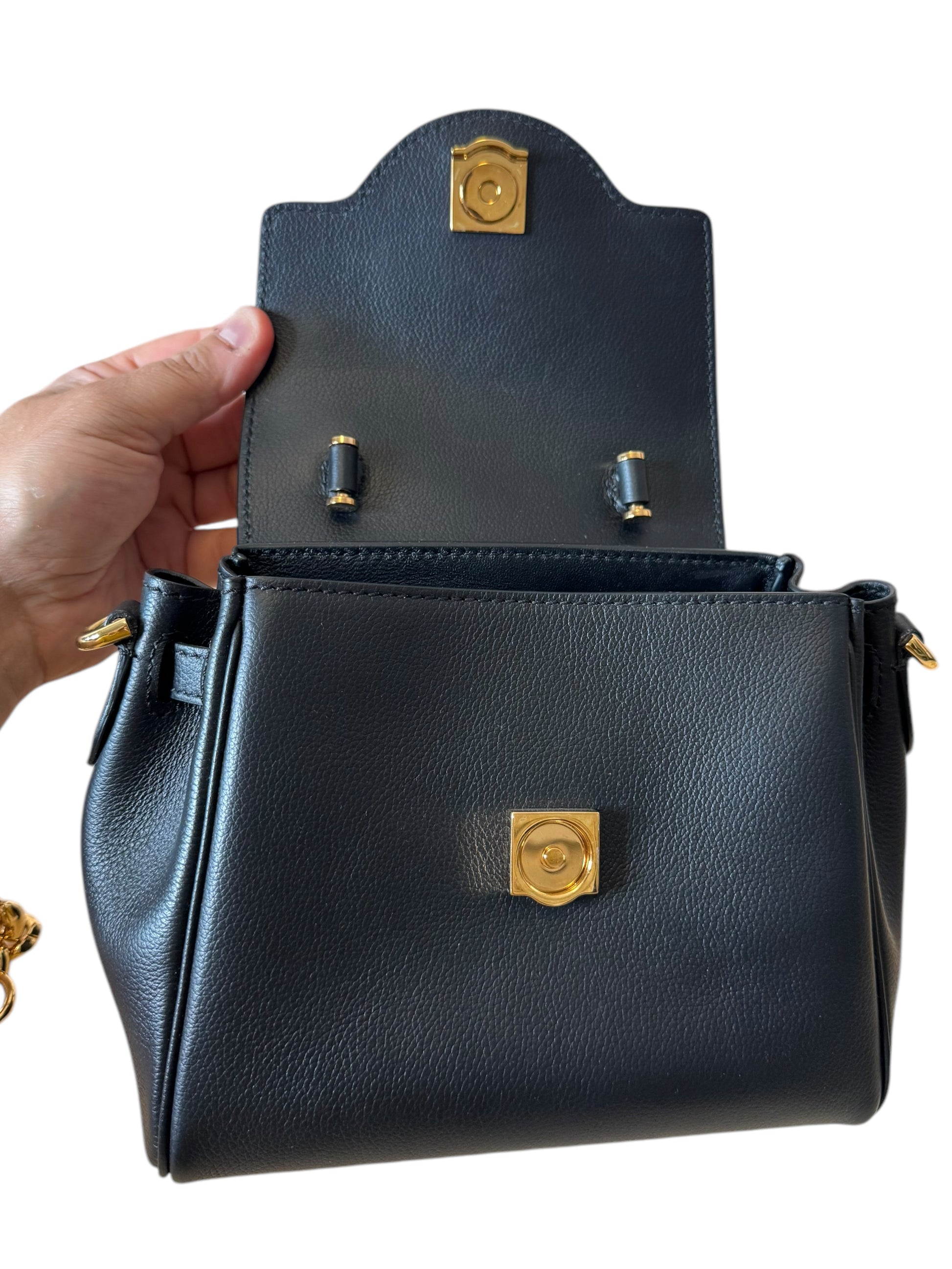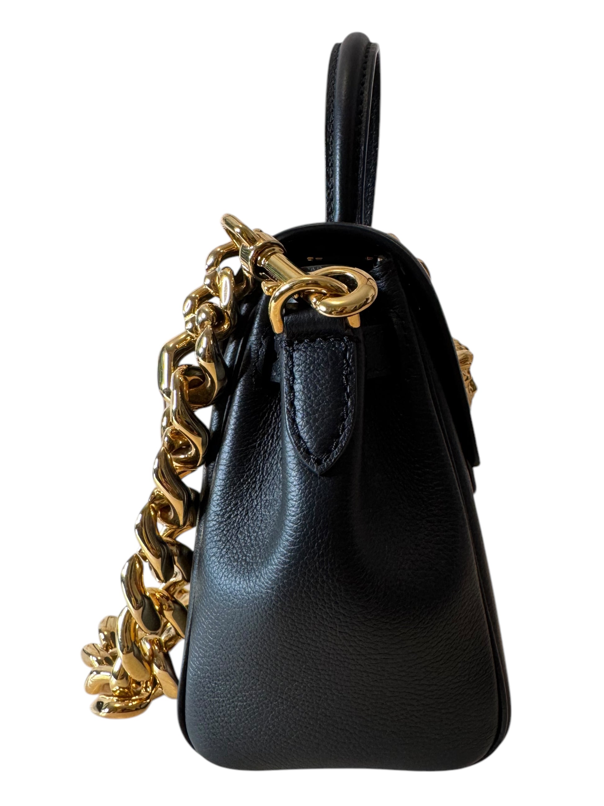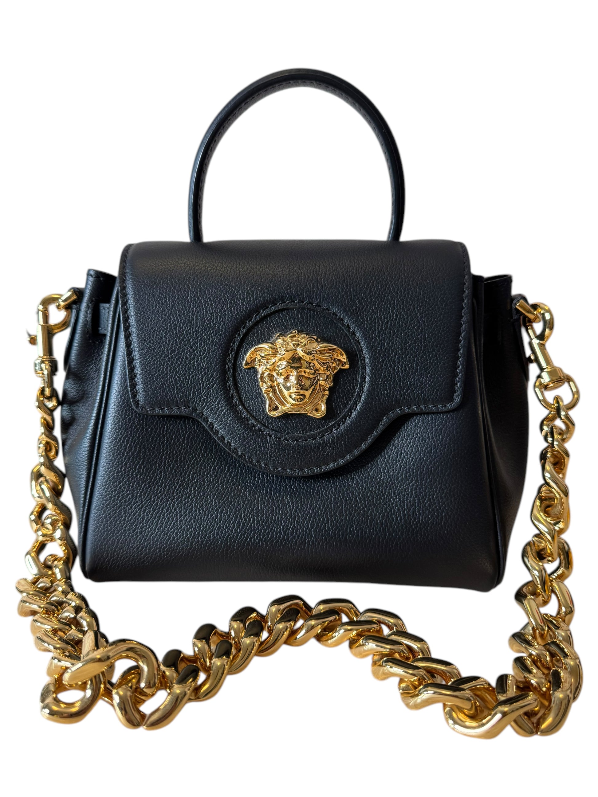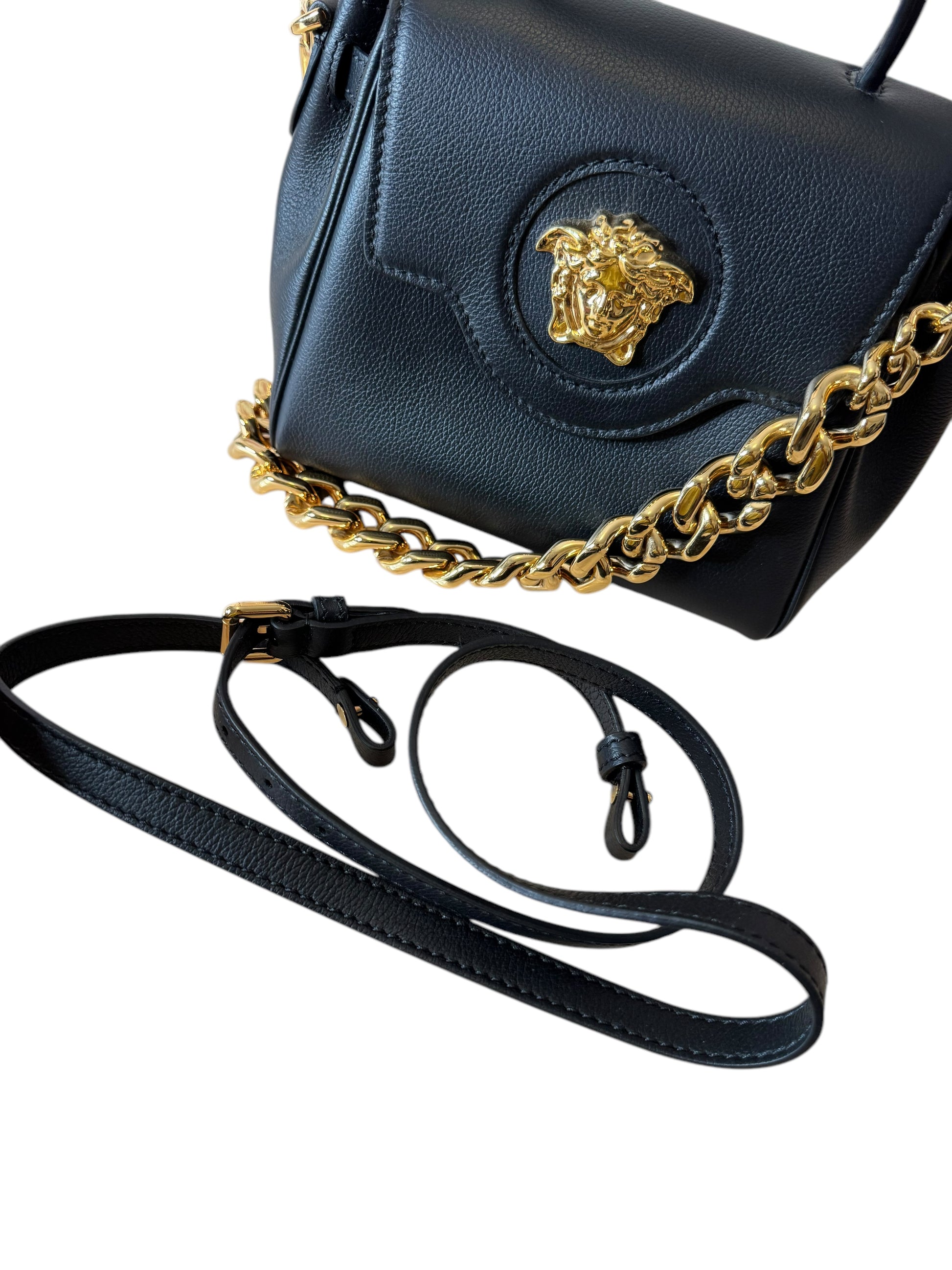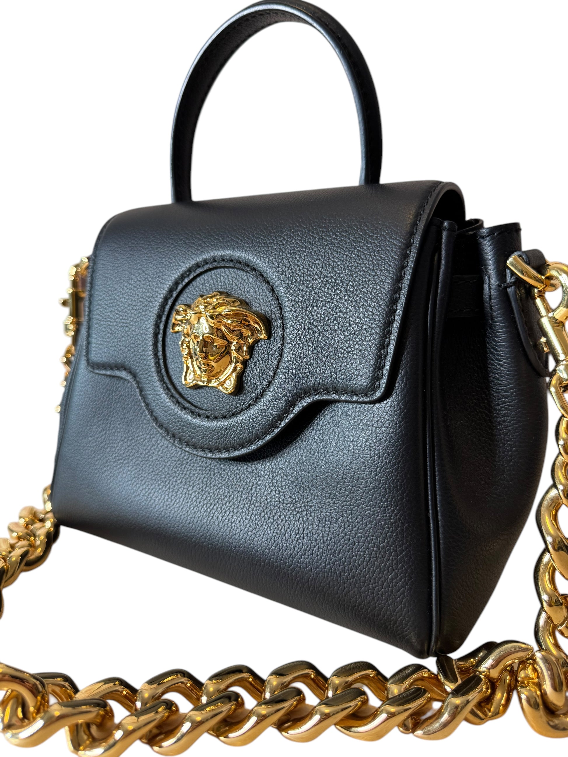 Versace Mini Borsa Medusa in Pelle Nera con Tracolla a Catena Oro - Made in Italy