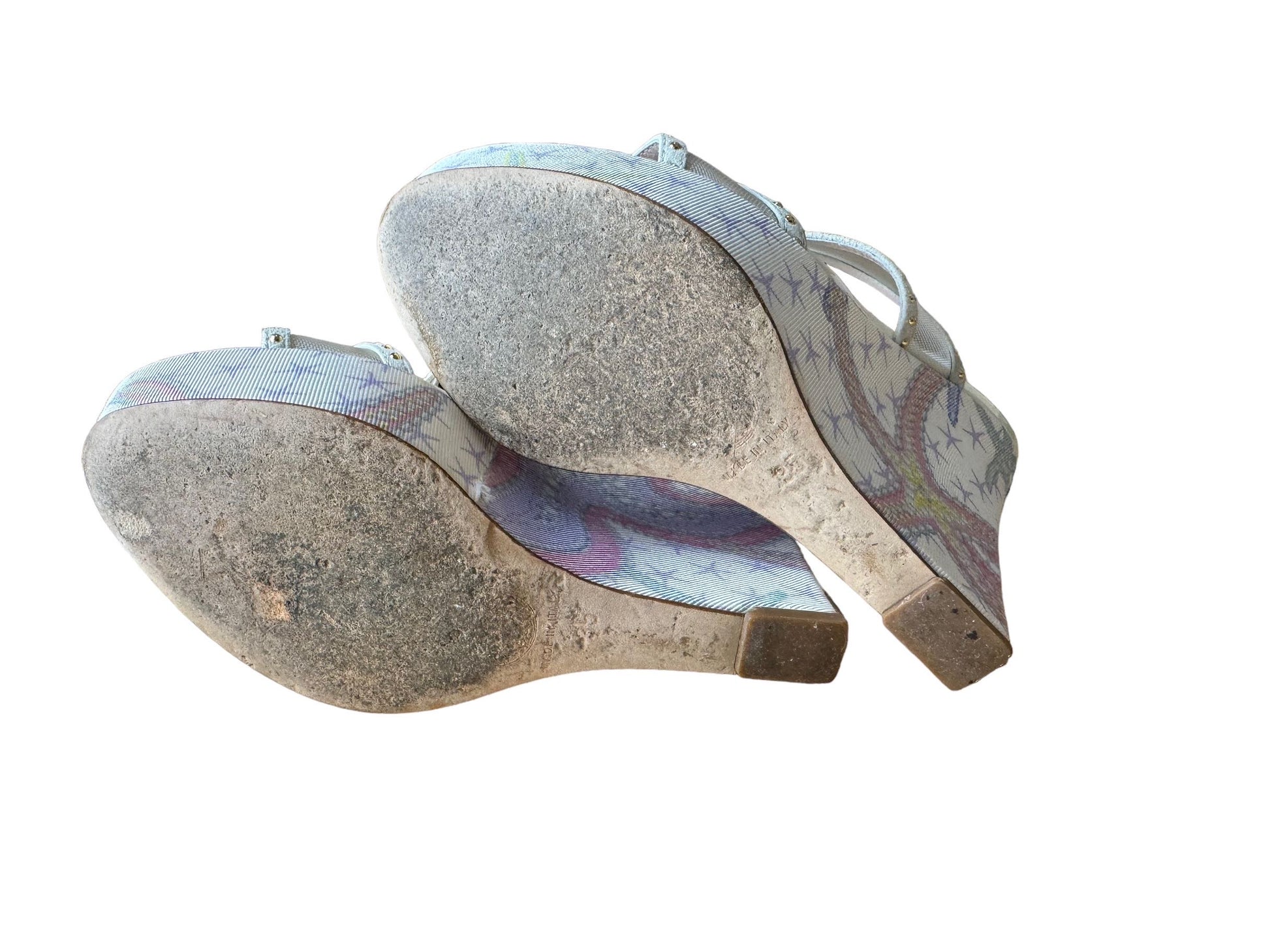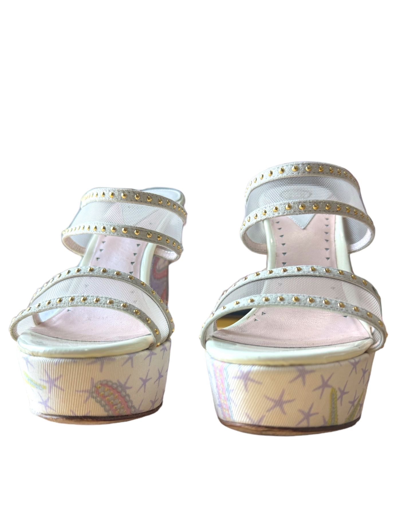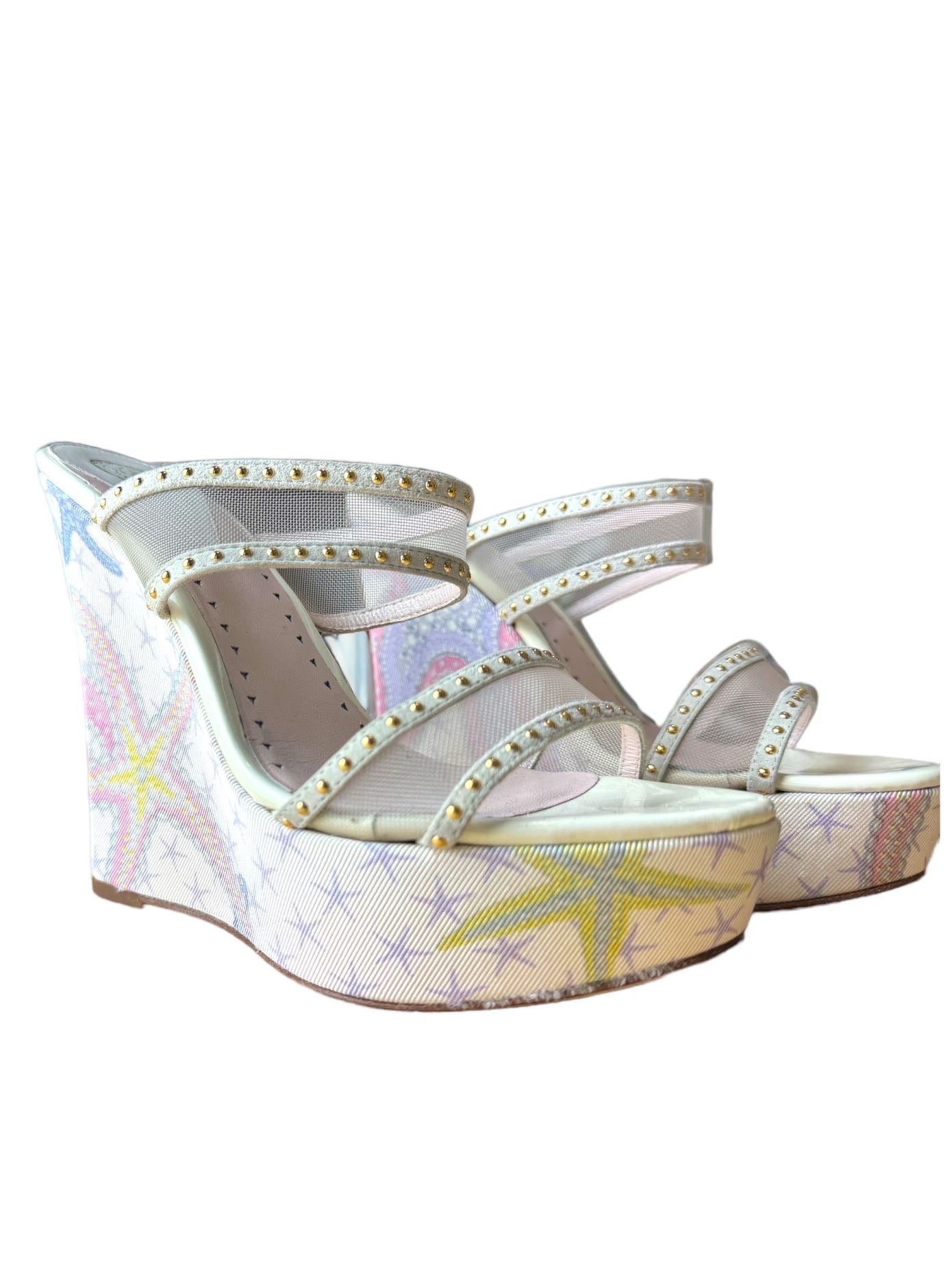 Versace sandali tresor de la mer con zeppa e placca dorata sul retro. Numero 35