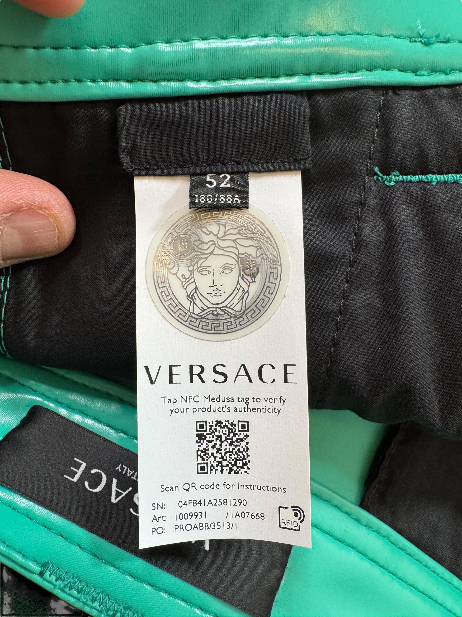 Versace Shorts Uomo Verde Acqua – Materiale Gommato – Taglia 52