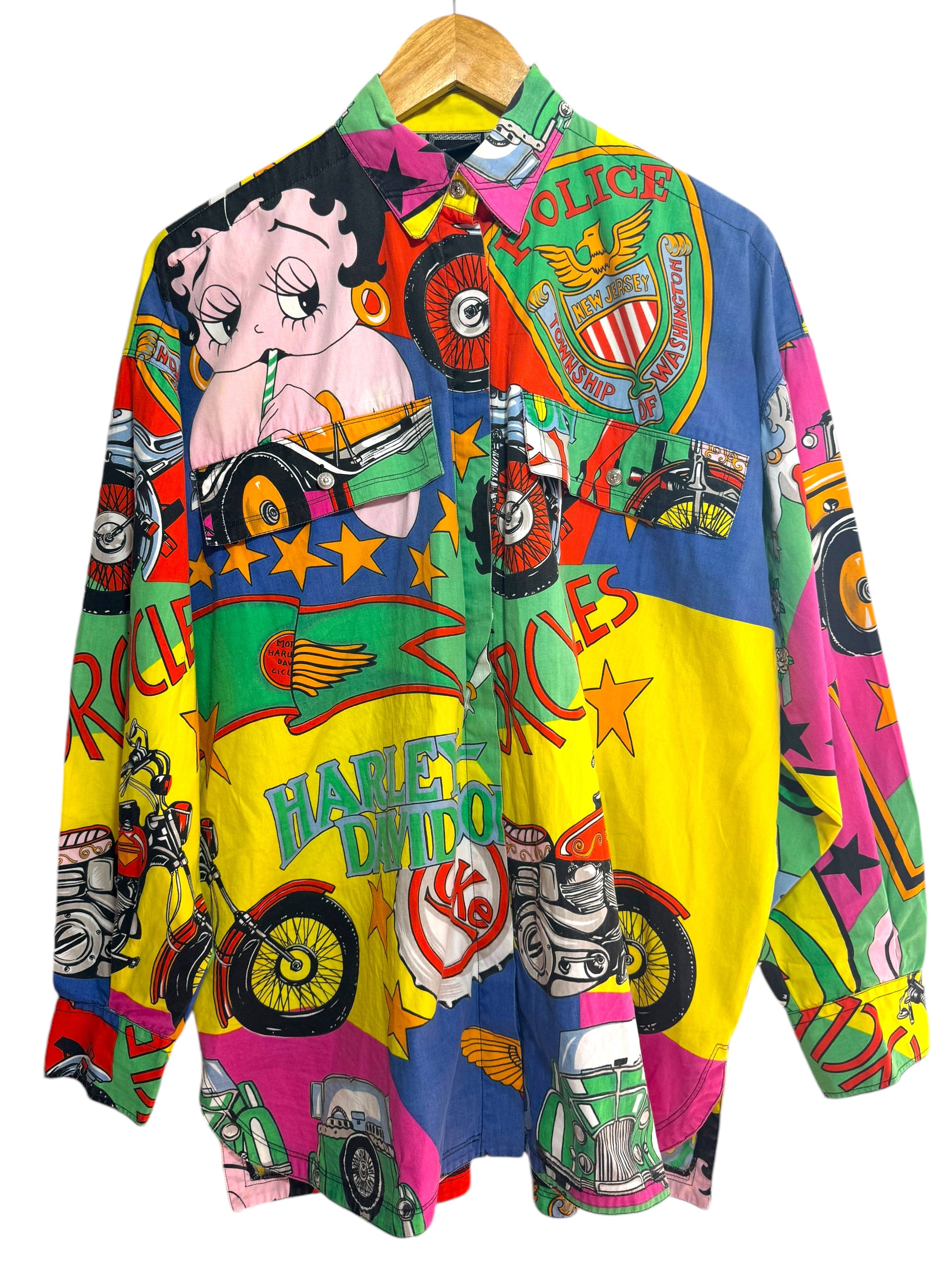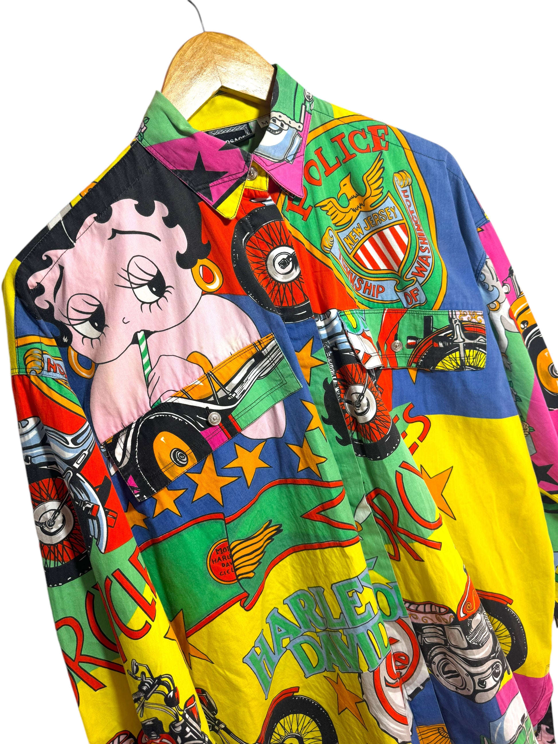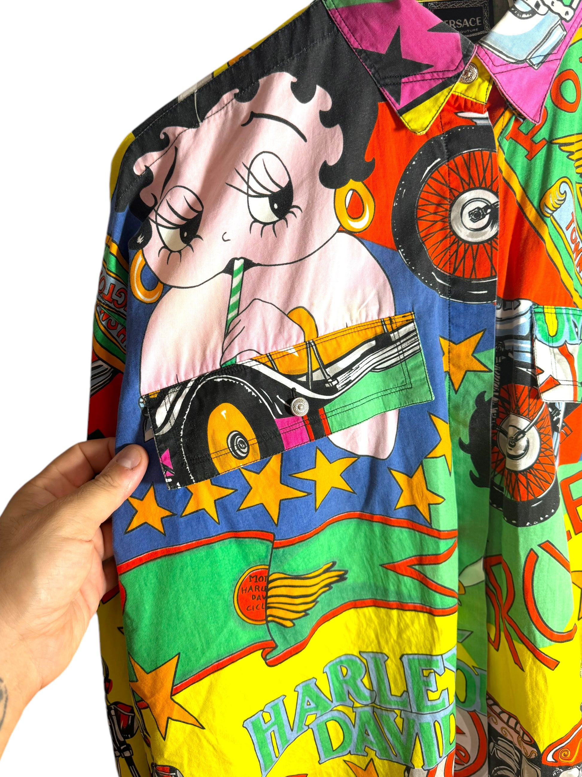 Versace vintage camicia Betty Boop Harley Davidson, taglia M oversize. Unisex