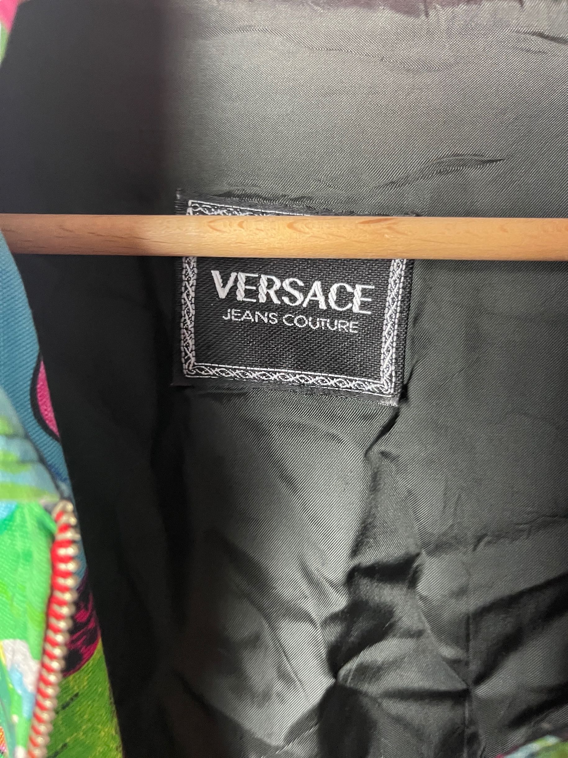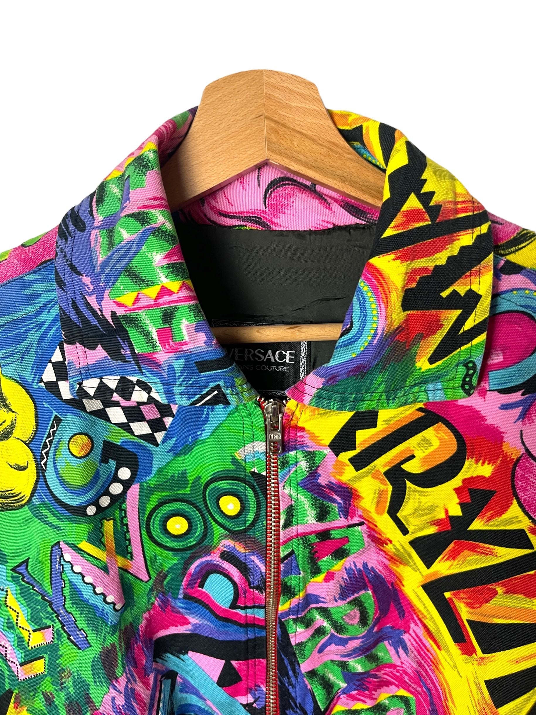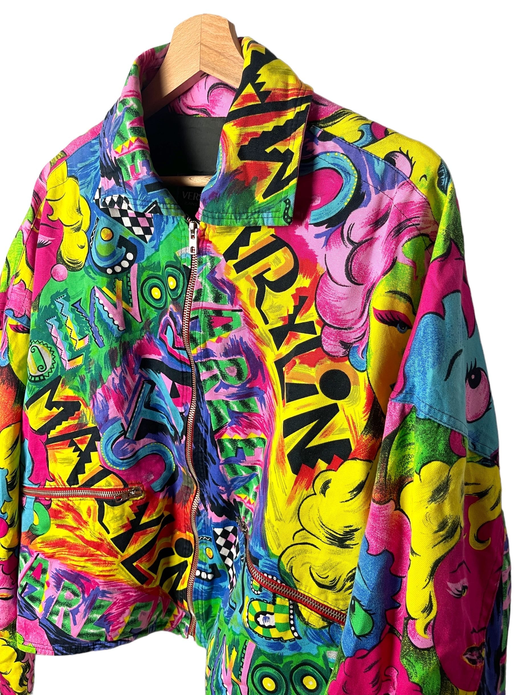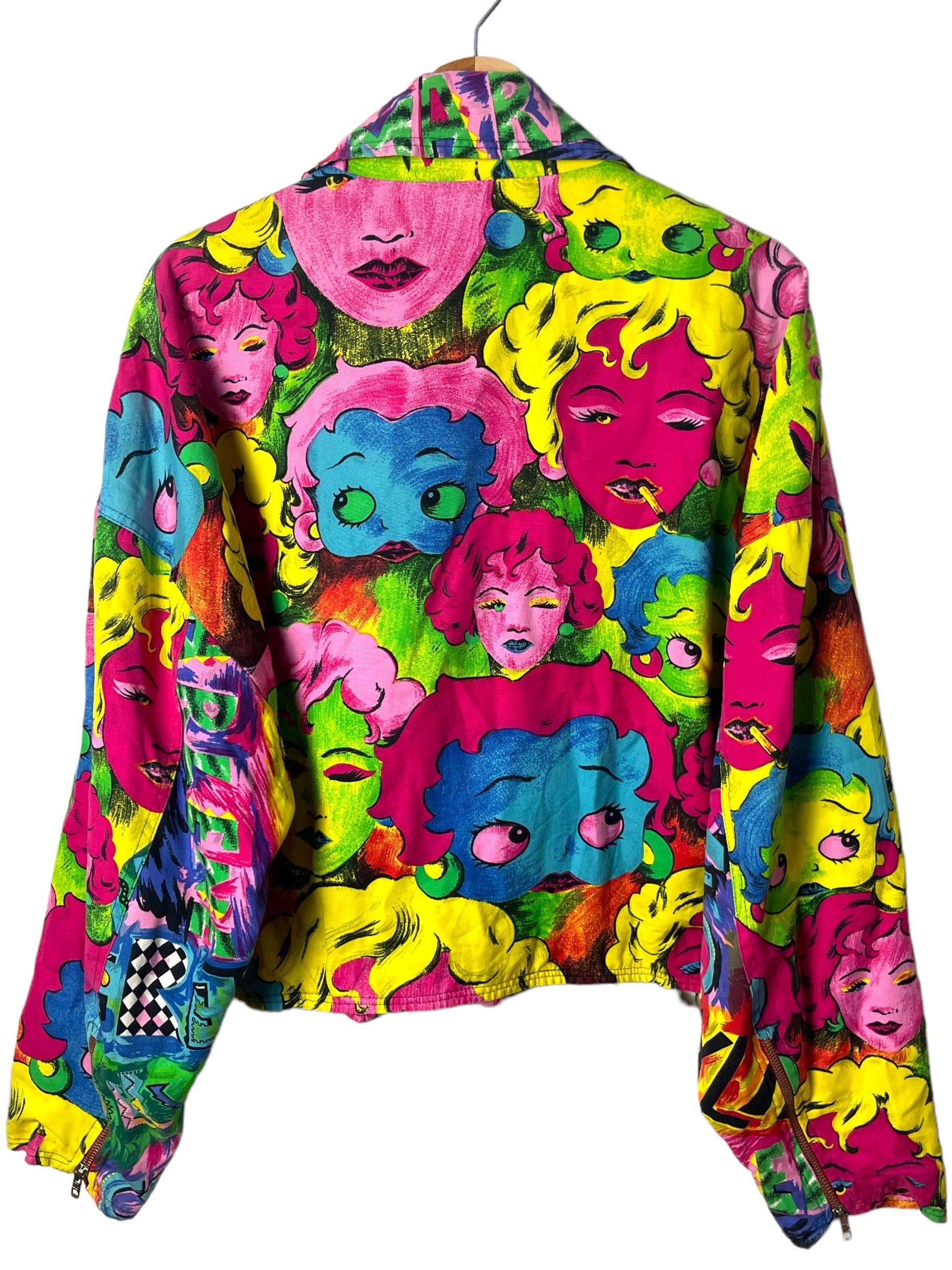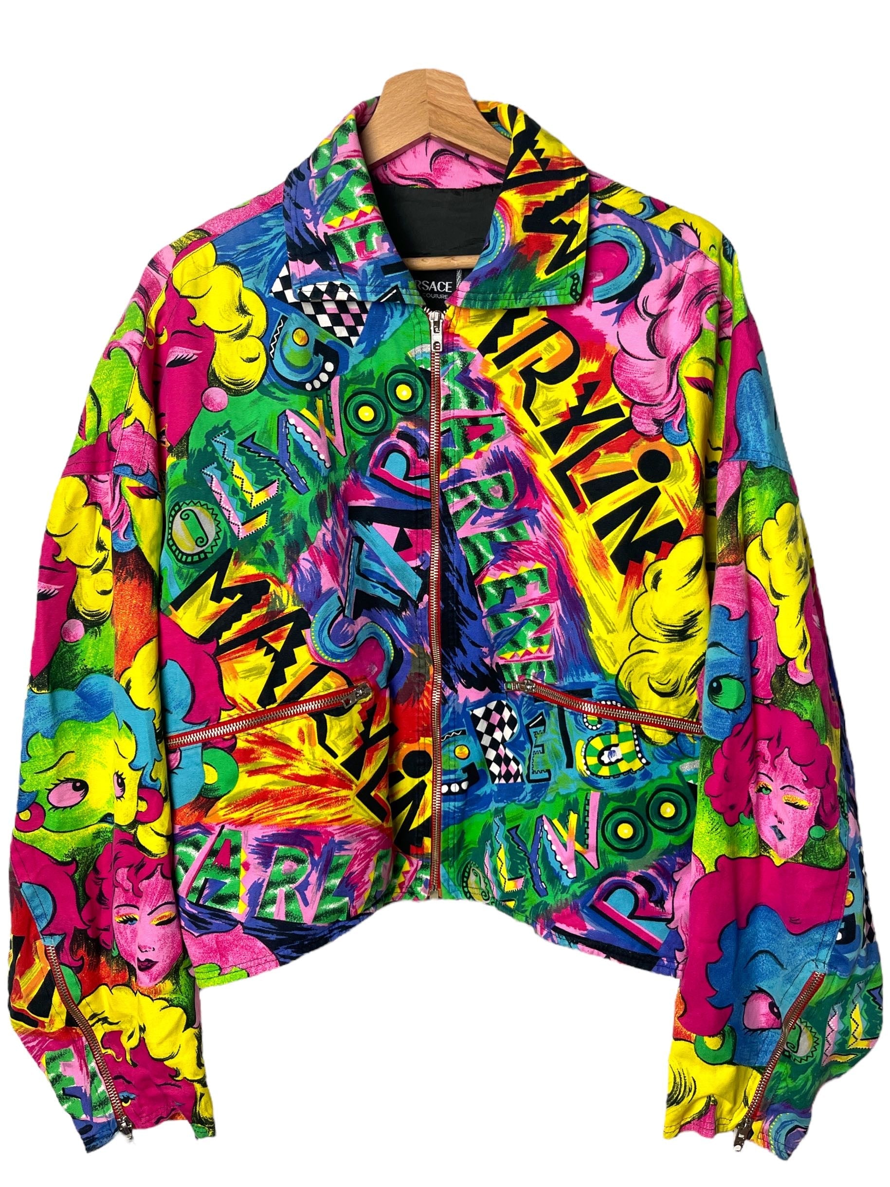 Gianni Versace linea jeans couture, giacca con stampa pop art Betty boop e Marylin Monroe.