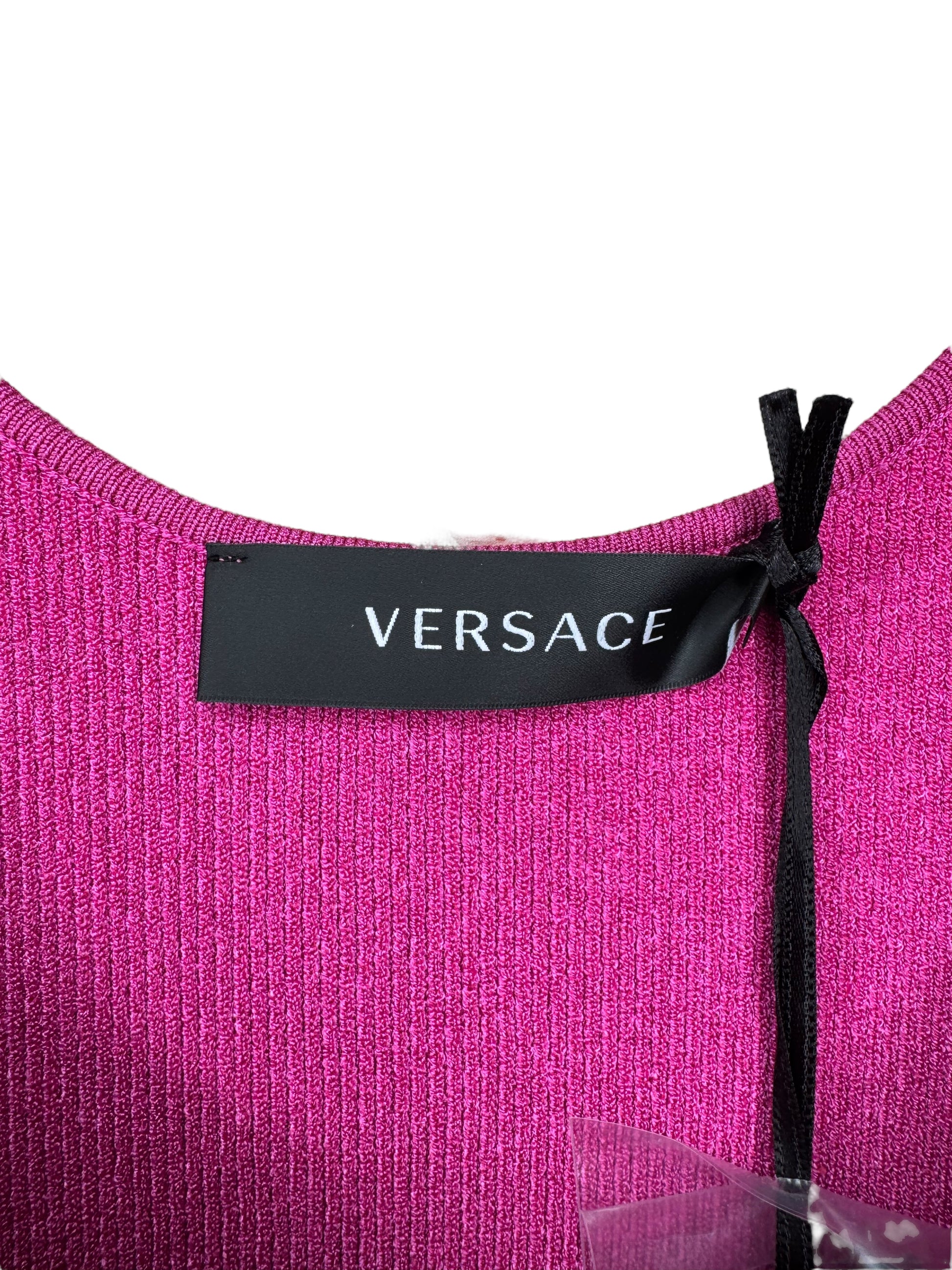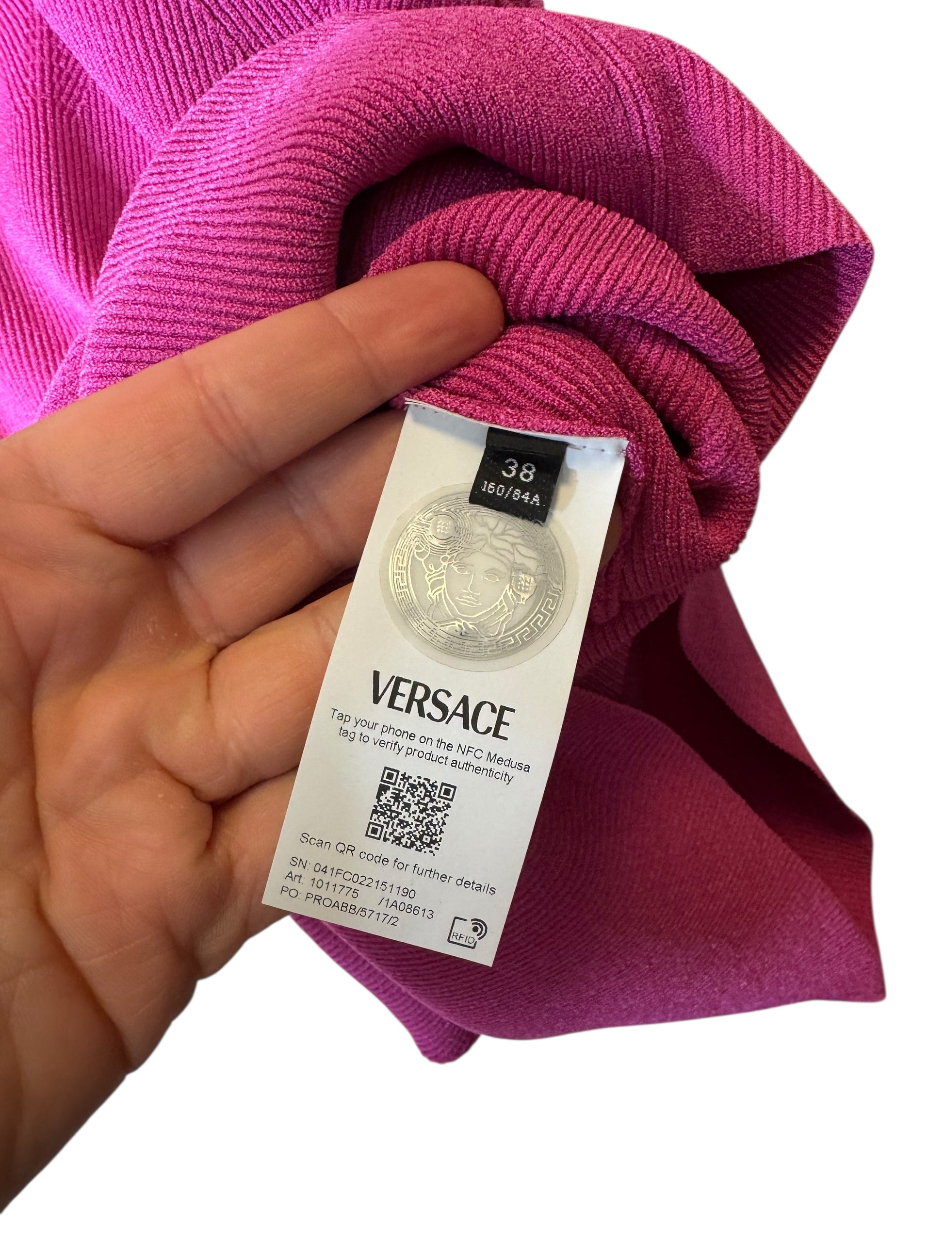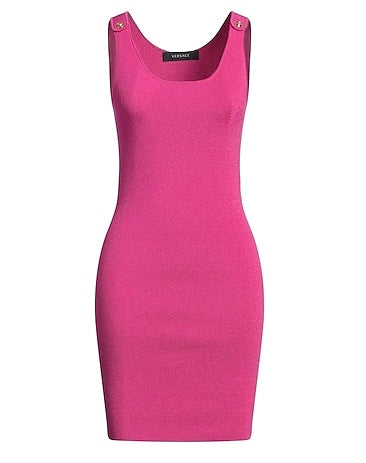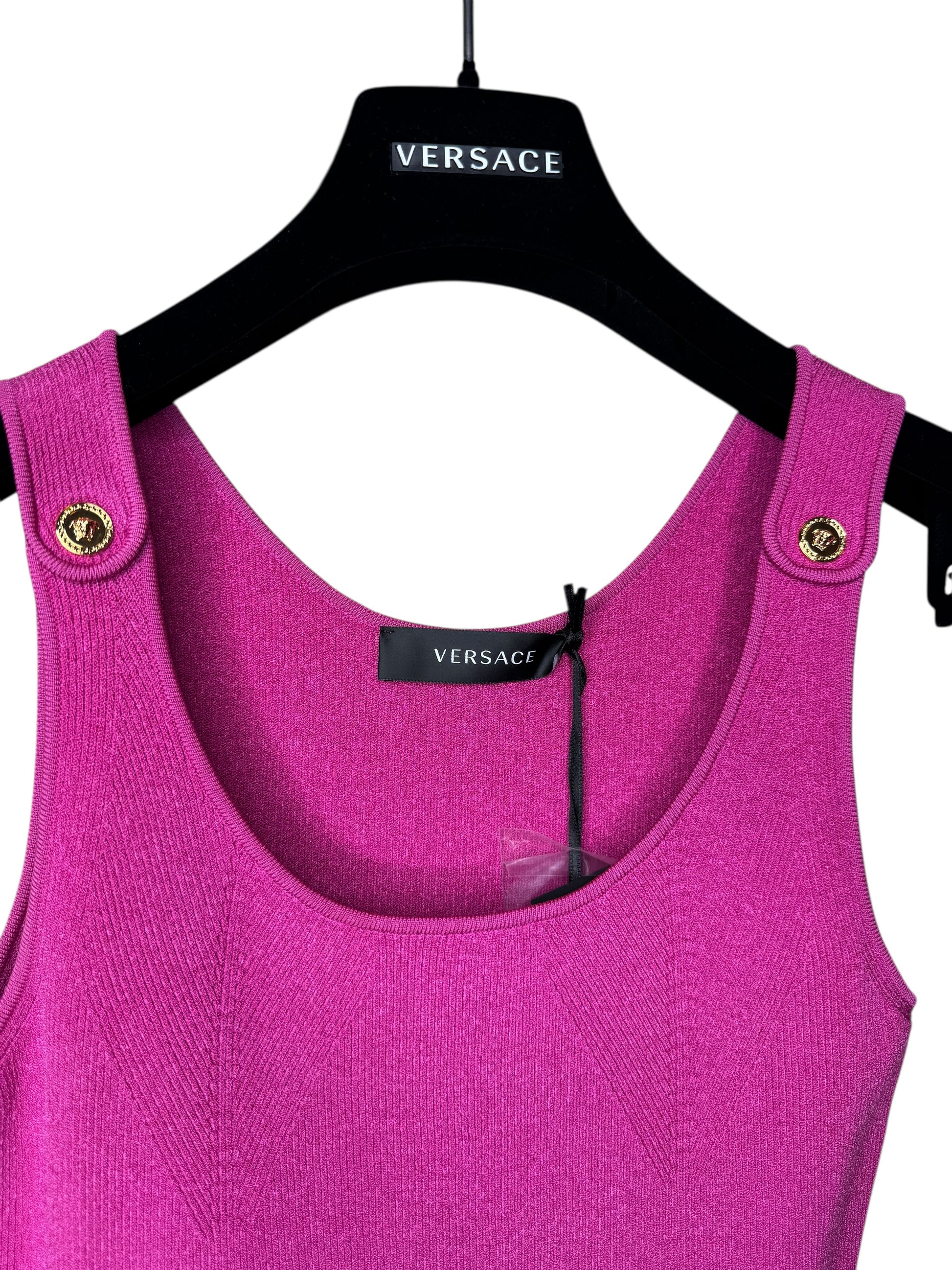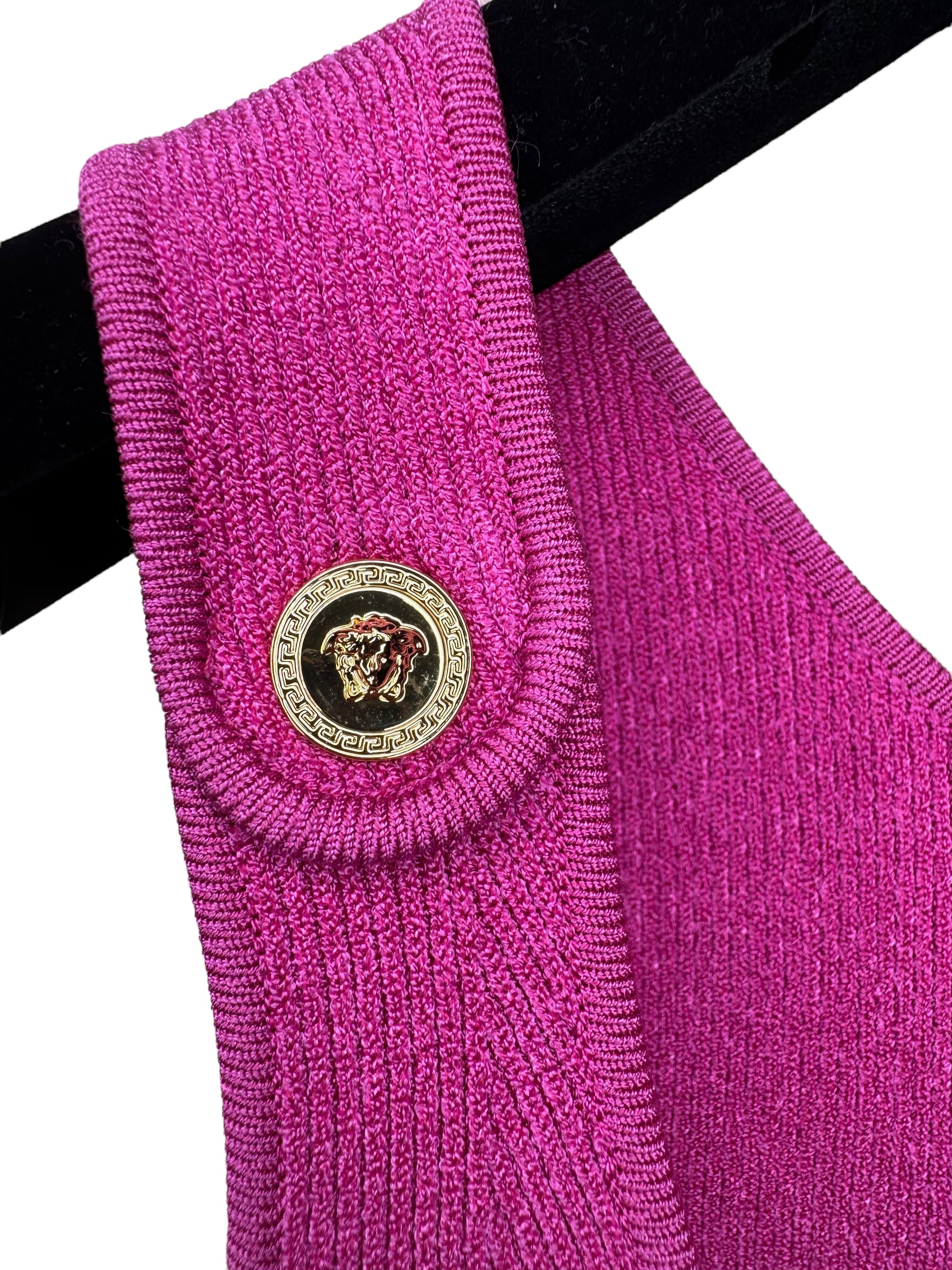 Vestito Versace fucsia in maglia stretch con bottoni Medusa dorati – Taglia IT 38