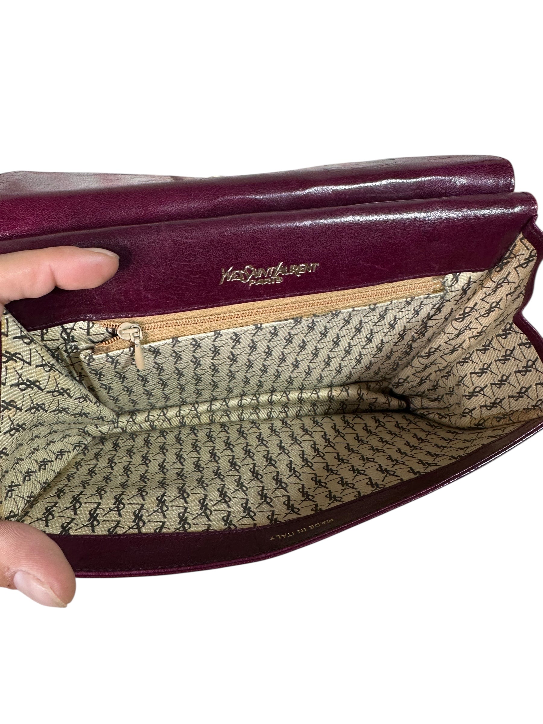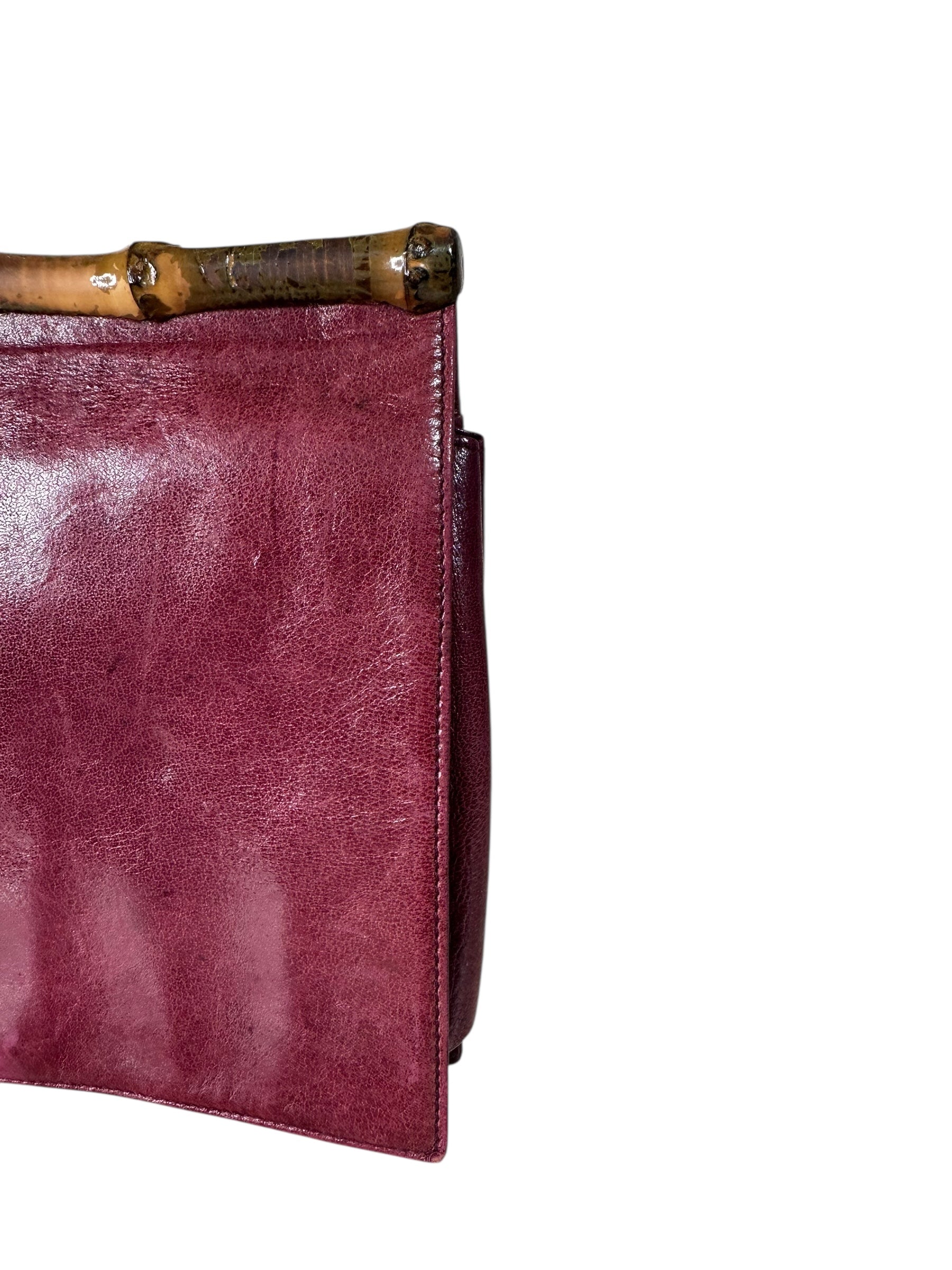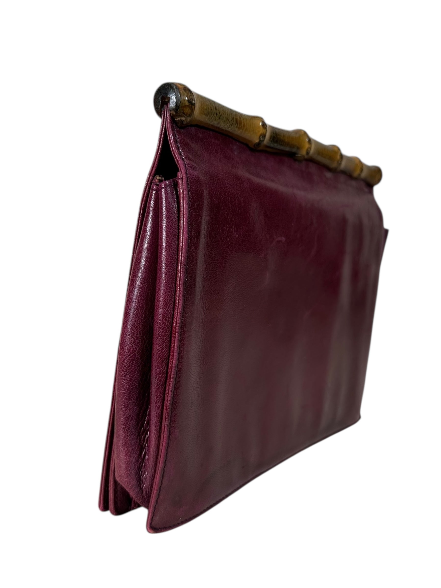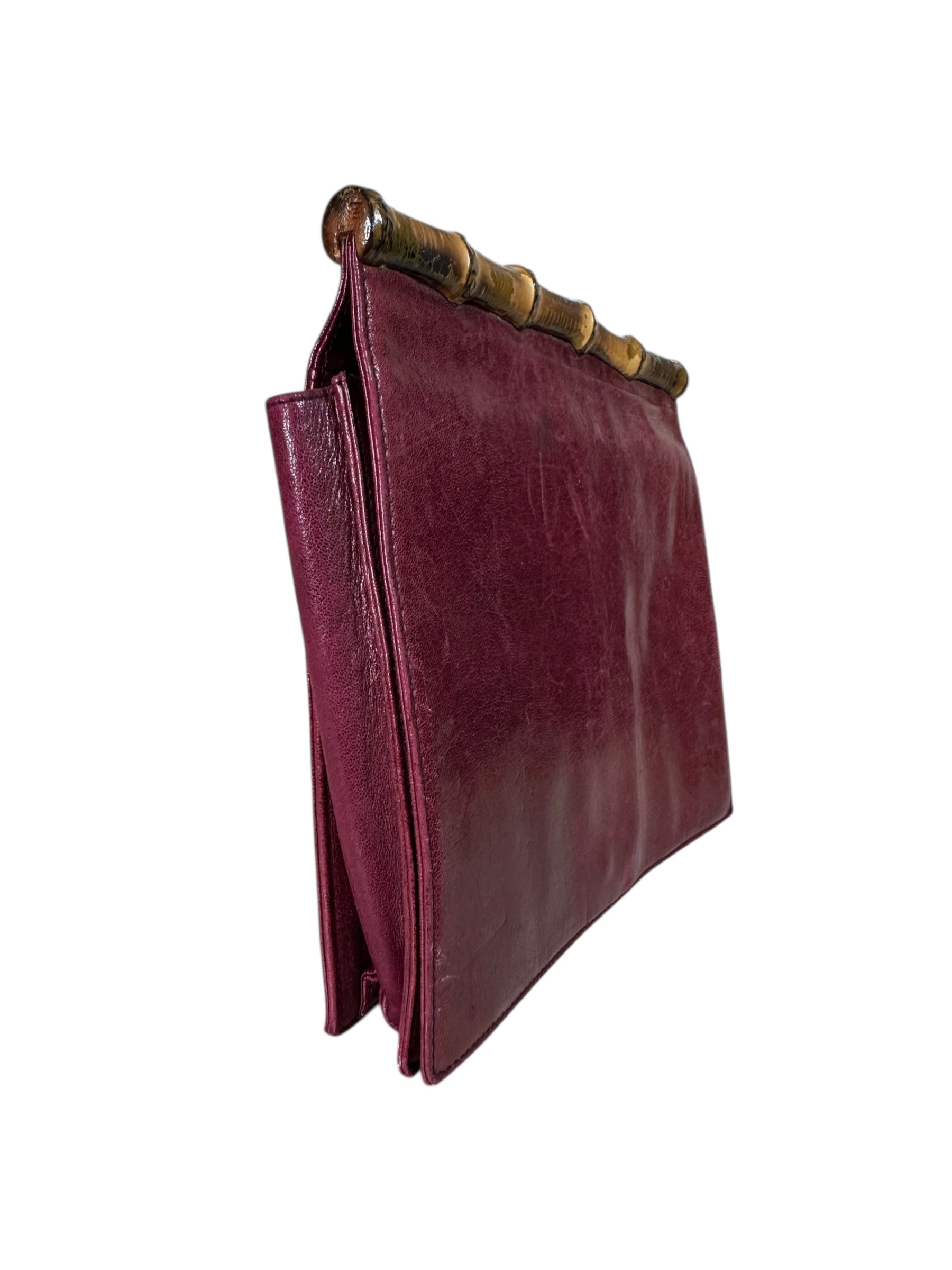 Yves Saint Laurent – Pochette vintage in pelle bordeaux con dettaglio bamboo