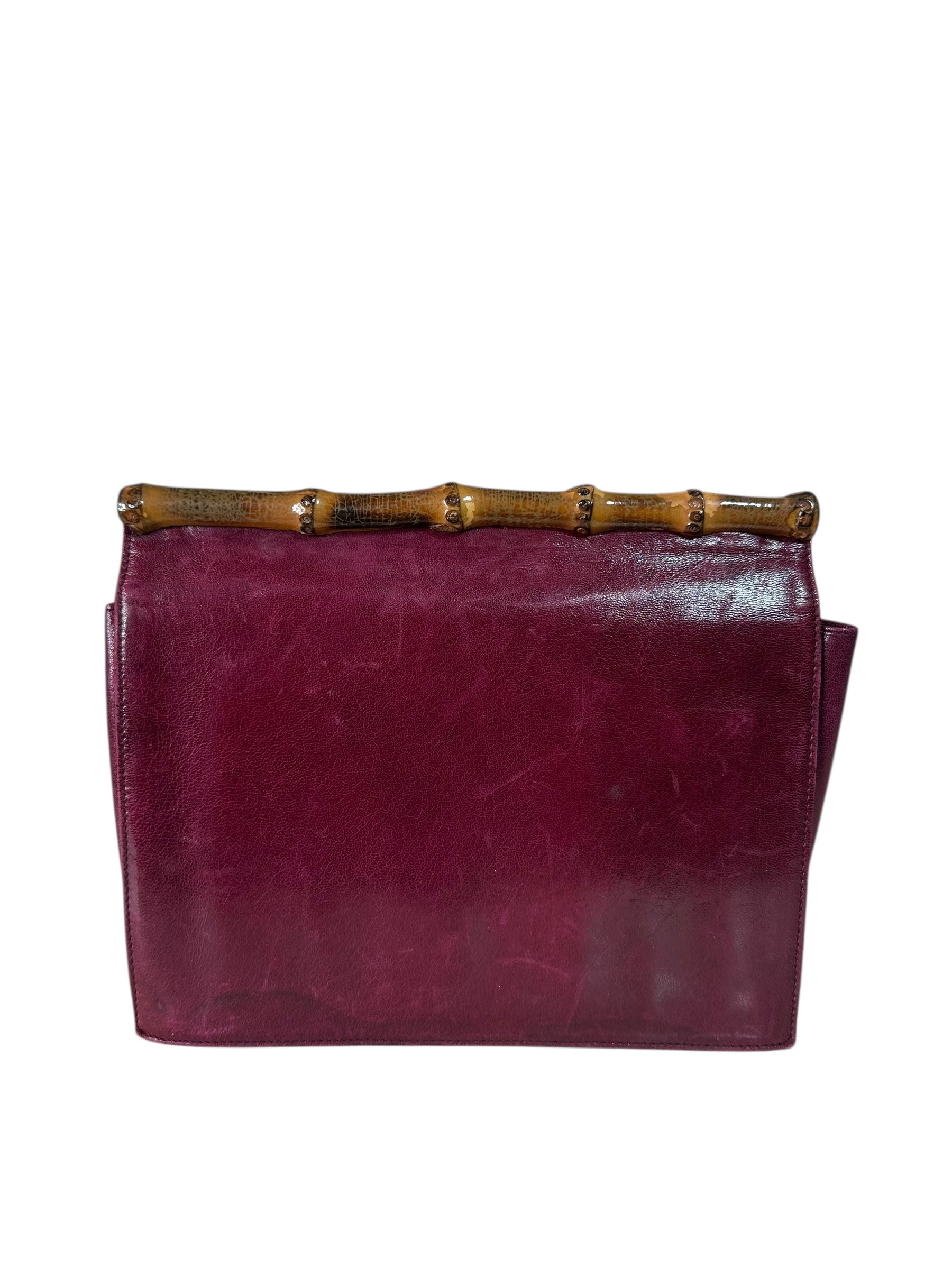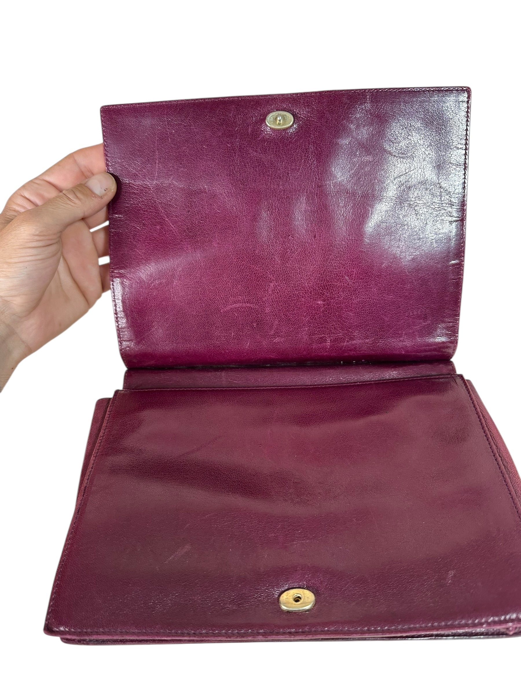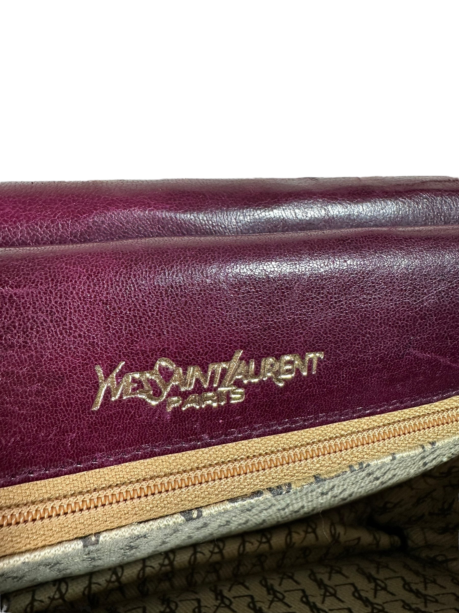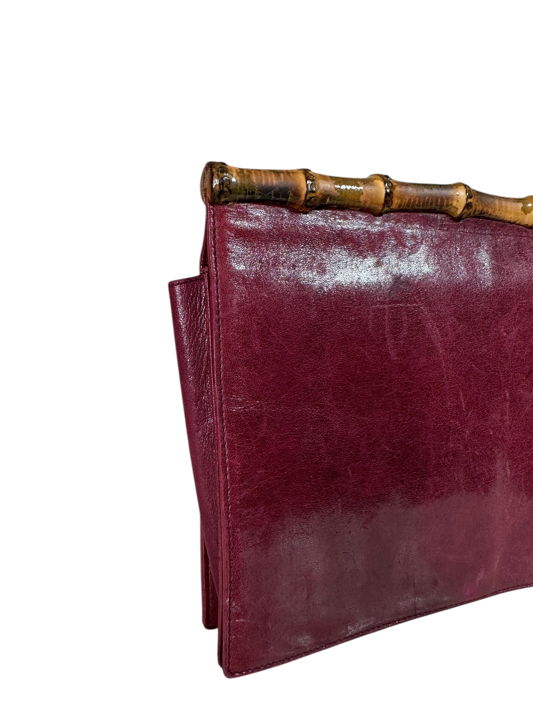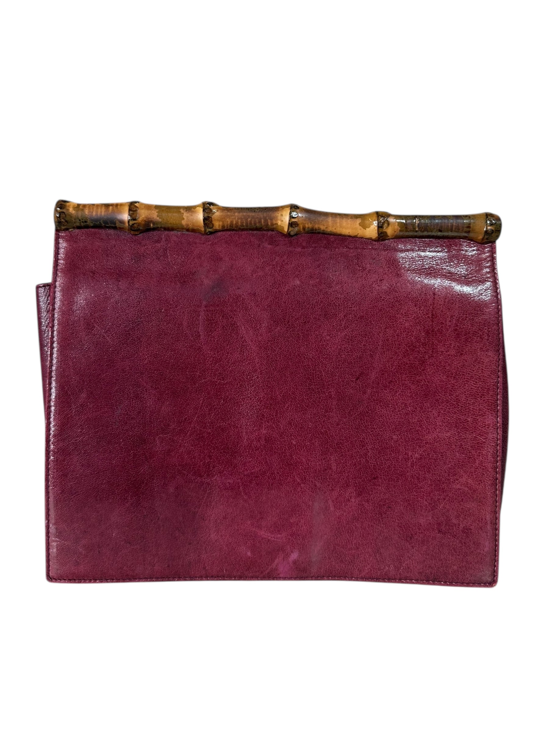 Yves Saint Laurent – Pochette vintage in pelle bordeaux con dettaglio bamboo