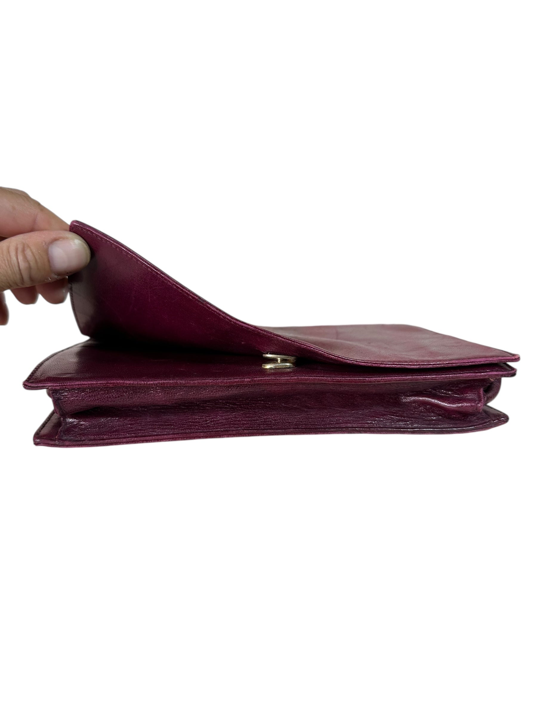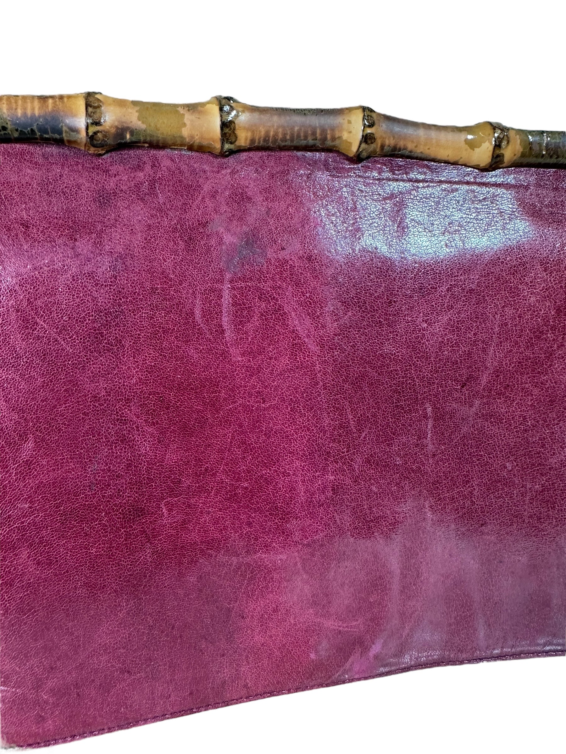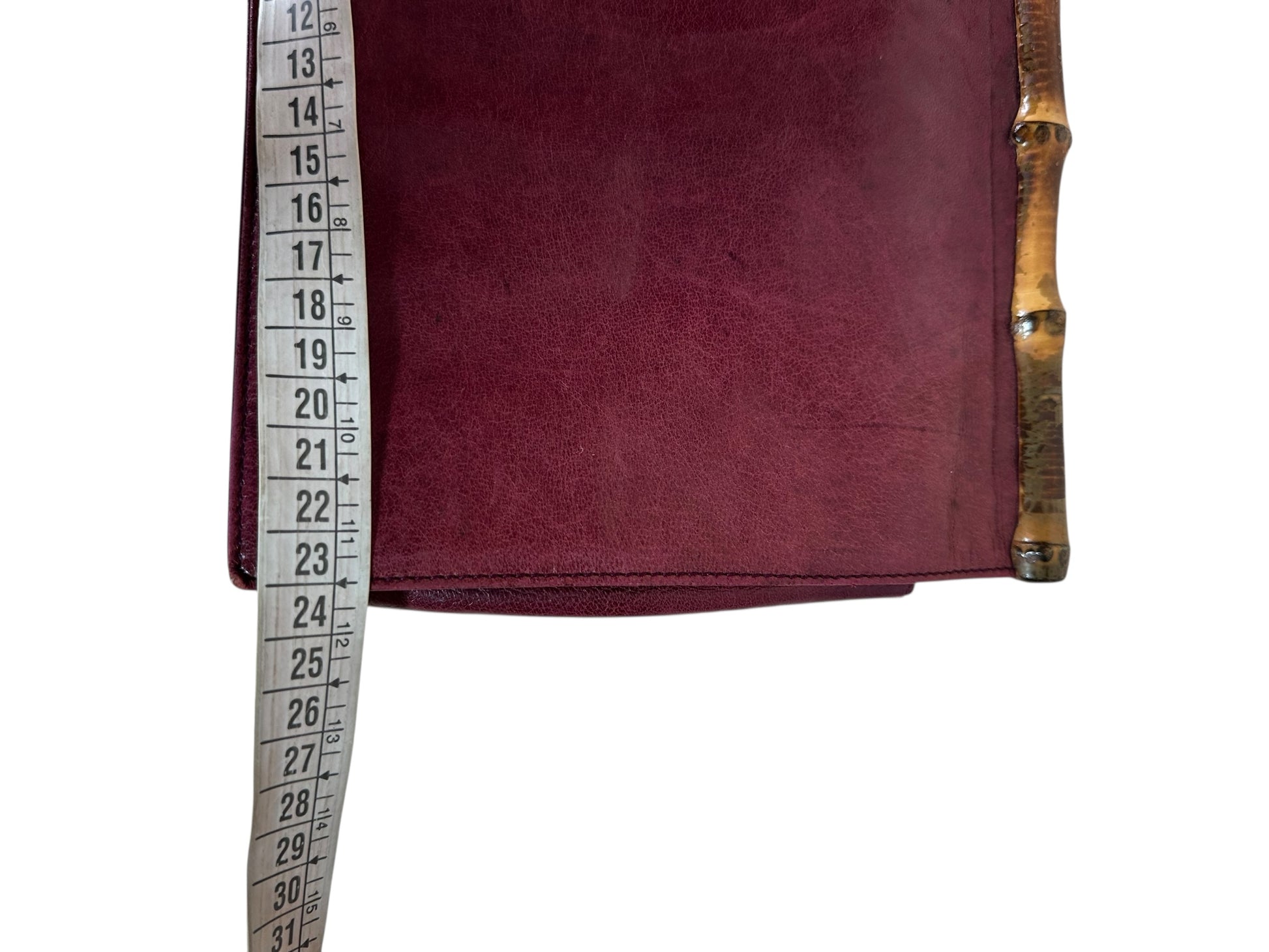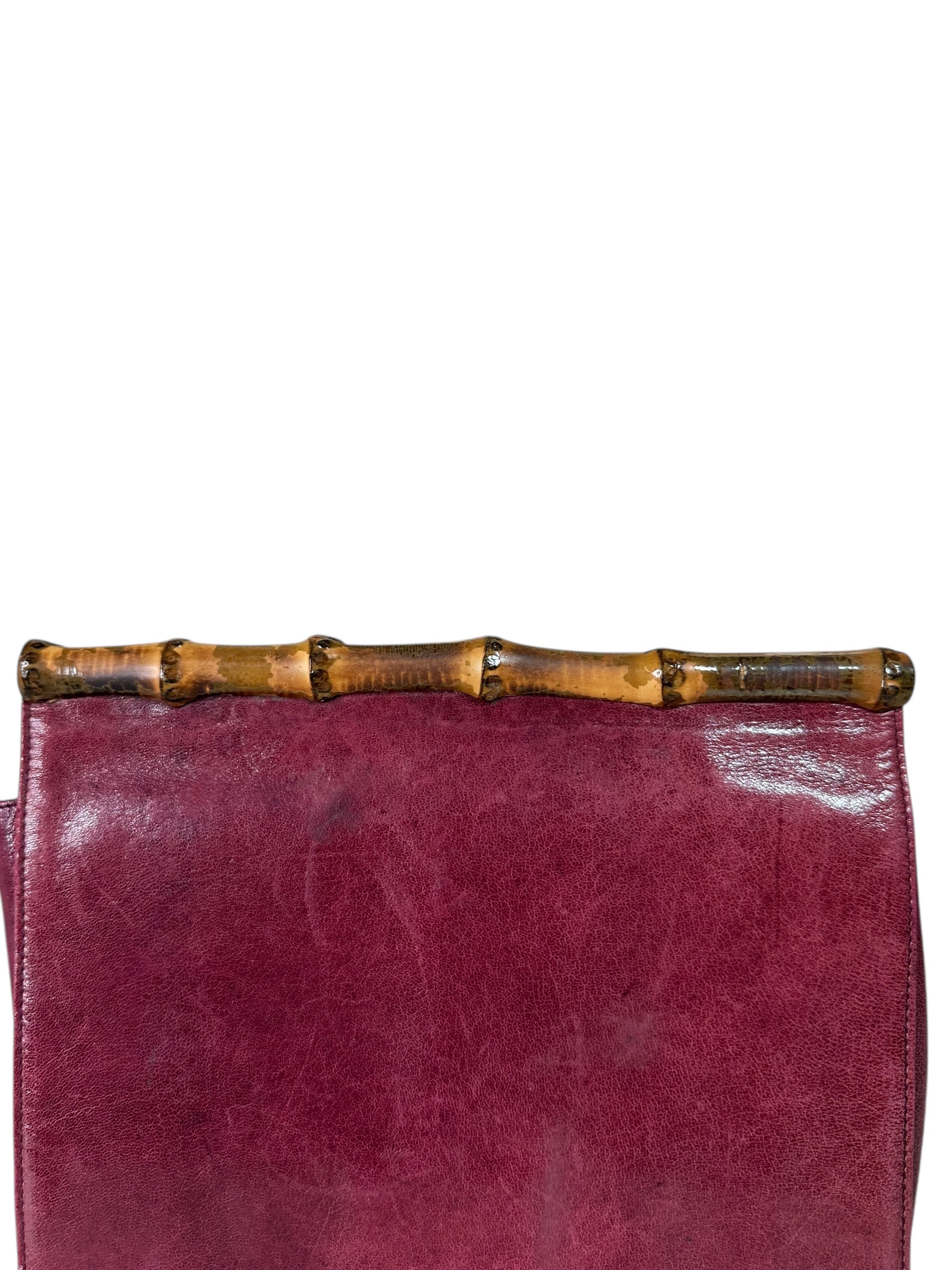 Yves Saint Laurent – Pochette vintage in pelle bordeaux con dettaglio bamboo